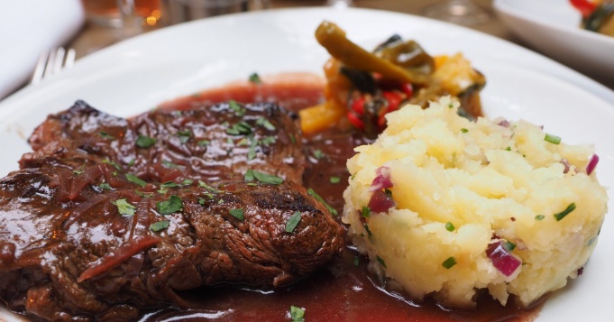 Ингредиенты: мясо — 700 гр, картофель — 5 штук, луковицы — 2 штуки, грибы — 250 гр, сыр — 200 гр, 2 столовые ложки сметаны, 2 чайные ложки горчицы, соль, тимьян, перец, сушеный чеснок.