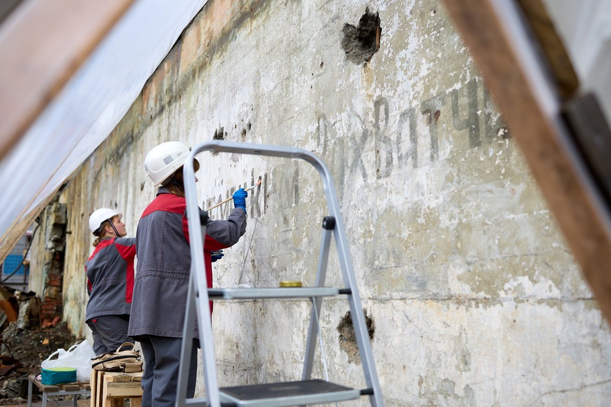 — Реставраторы завершили важный этап работ по консервации и реставрации исторической надписи. Это необходимо для защиты артефакта от дальнейшего разрушения, укрепления его структуры и сохранения для будущих поколений. Специалисты также проработали над проявлением цвета надписи, используя метод «обратного трафарета», — рассказали в Центре «Вторая школа».
