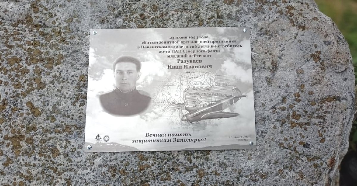 В Лиинахамари поисковики-исследователи из Заполярного Альберт Ничипорук и Сергей Швецов установили памятный знак летчику-истребителю Северного флота, младшему лейтенанту Ивану Ивановичу Разуваеву.