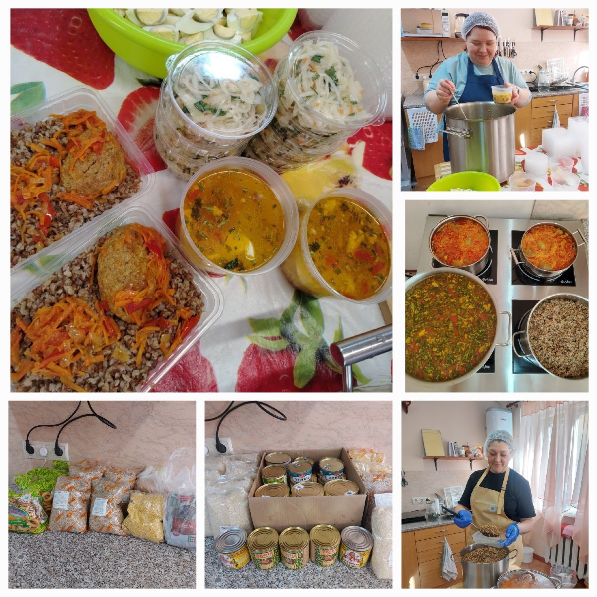 Та, в прошлое воскресенье волонтеры кормили нуждающихся куриным супом с лапшой, котлетами с гречкой, капустным салатом. Раздали полсотни порций.
