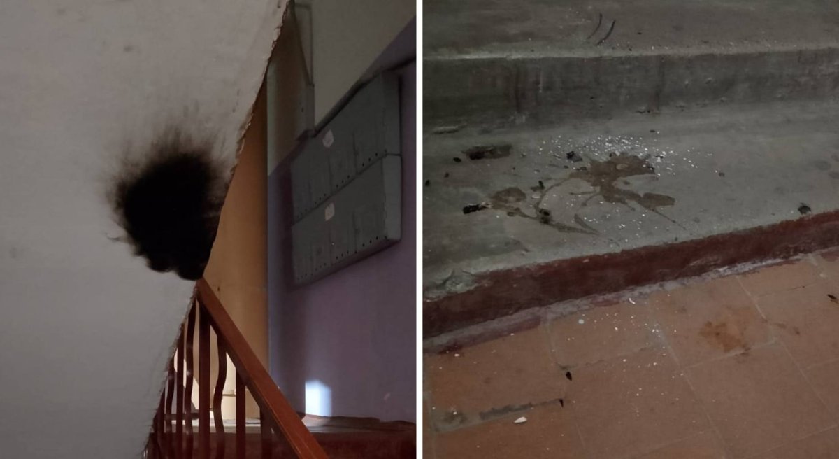 На опубликованных ею фотографиях заметны опаленная часть лестничного пролета и пепел на ступеньках.