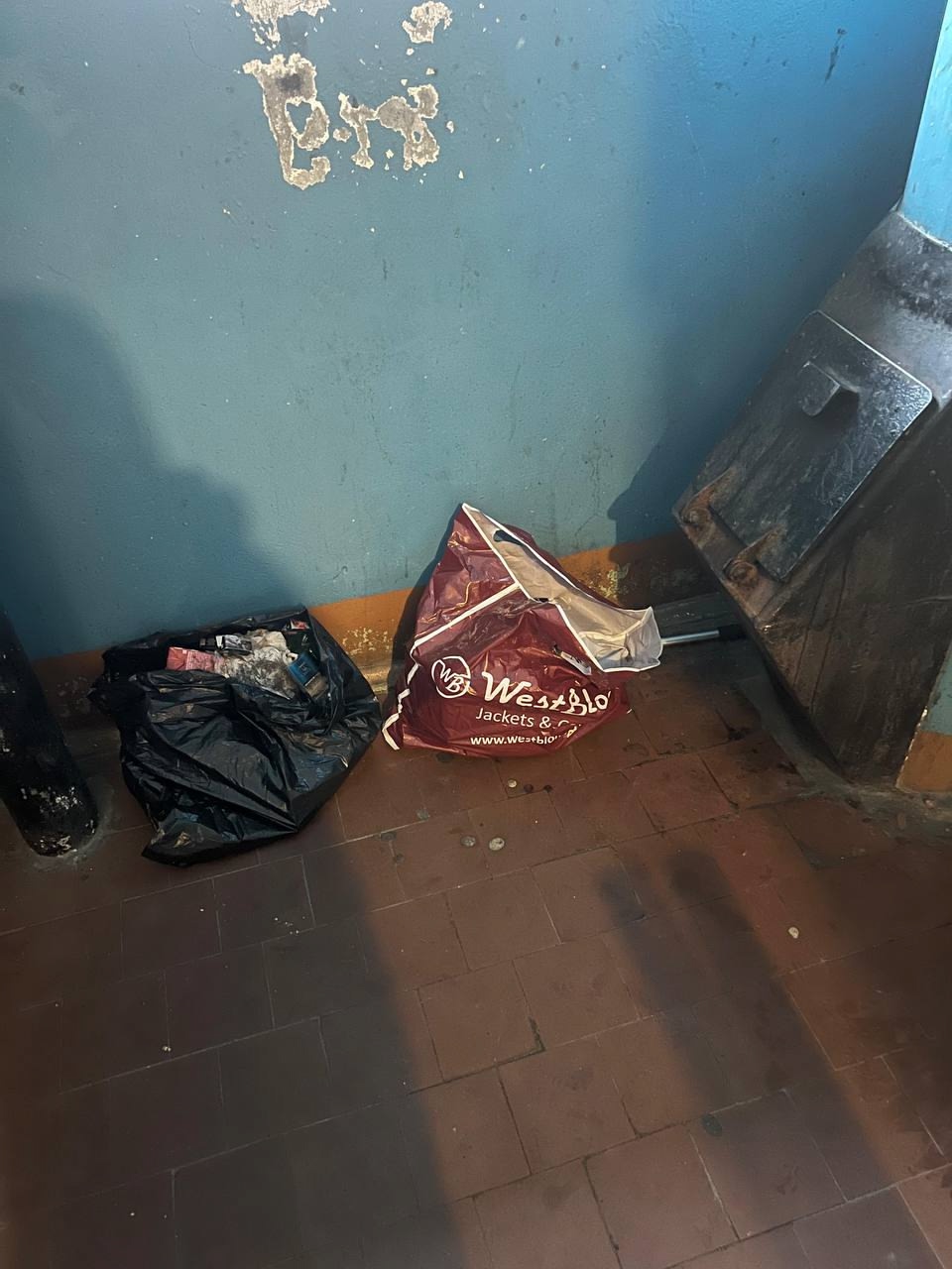В Мурманске жильцы дома пакеты с отходами бросают в подъезде прямо у мусоропровода