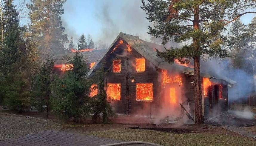 Огонь уничтожил двухэтажный дом в дачном поселке под Туломой