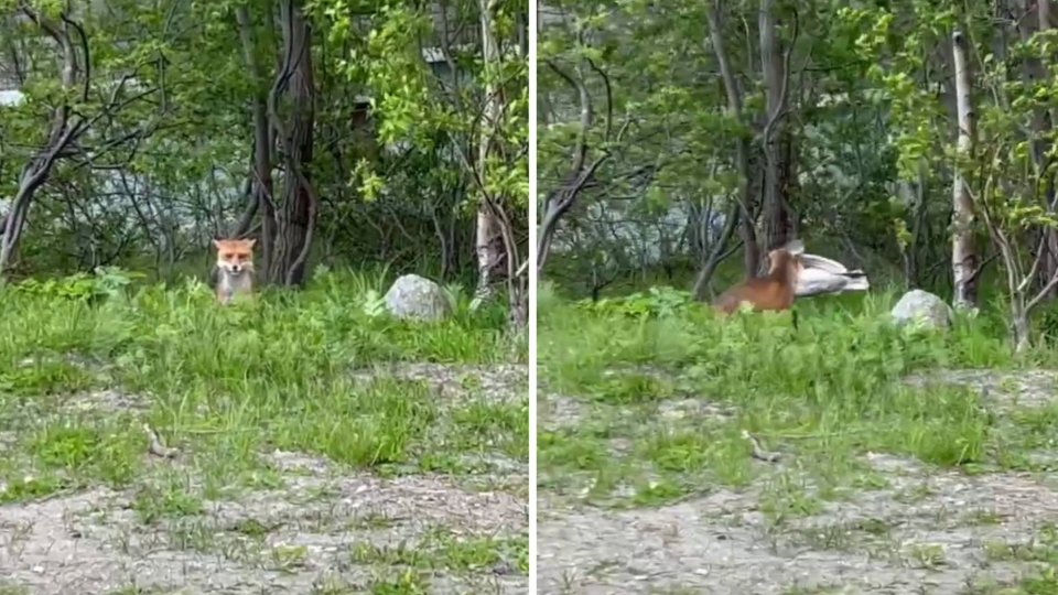 Лиса поймала в Кировске чайку и утащила в кусты