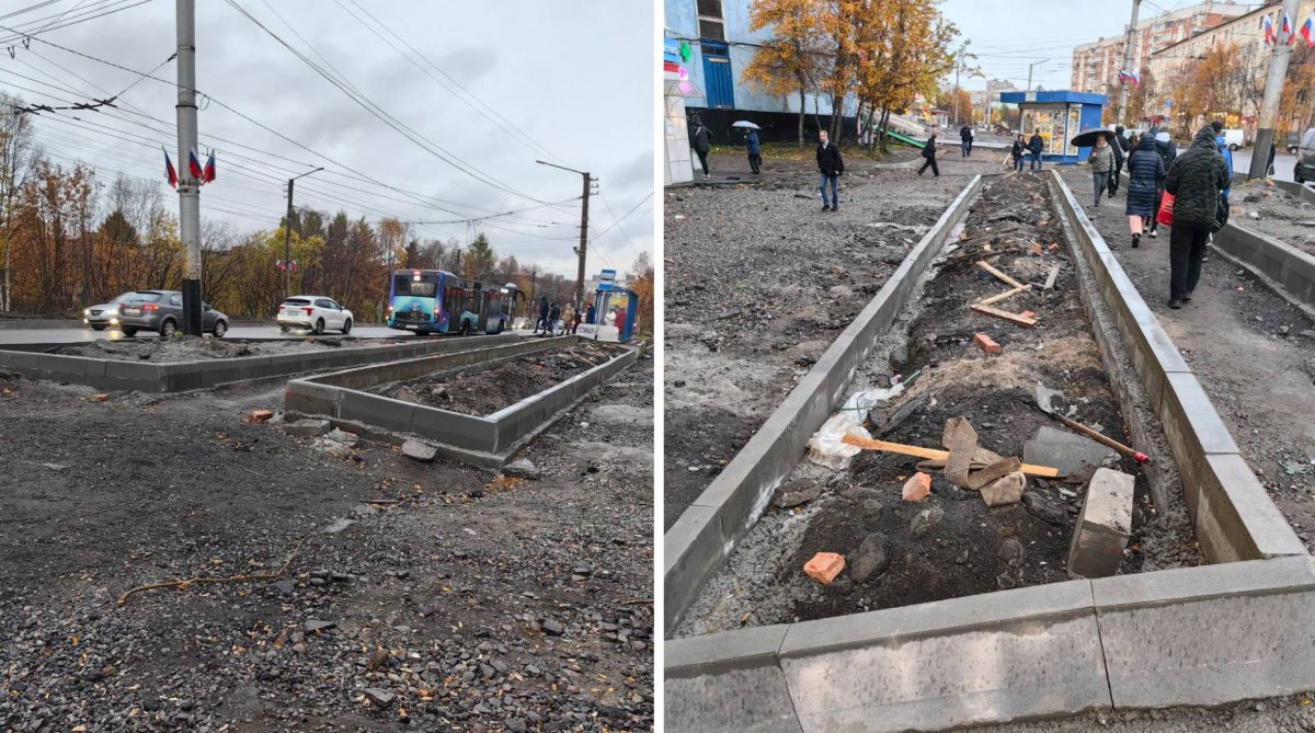 Жители Мурманска вновь высказали возмущение затянувшимися работами по обновлению тротуаров в Ленинском округе. Об этом они написали в соцсетях, приложив фотографии в качестве доказательств.
