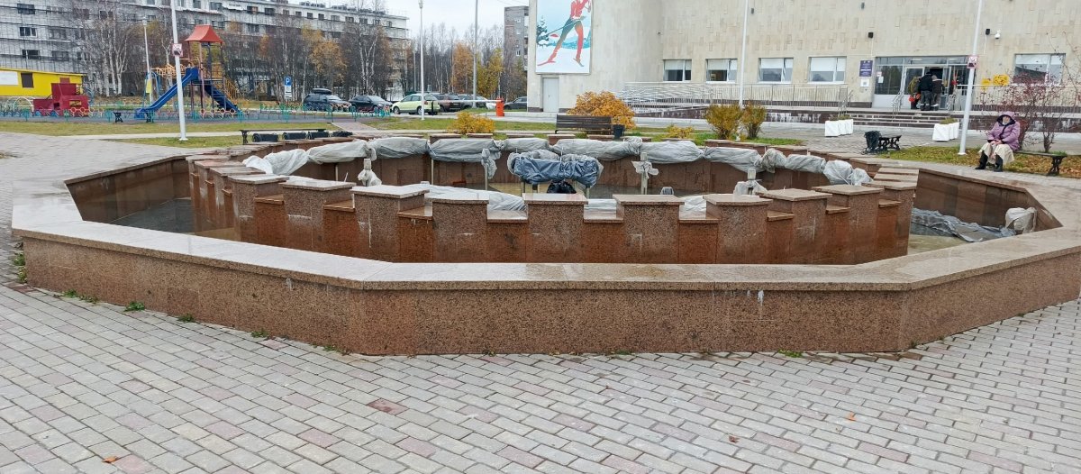 Фонтан у спорткомплекса «Атлет» в Апатитах «консервируют» на зиму. Об этом сообщили в администрации муниципалитета.