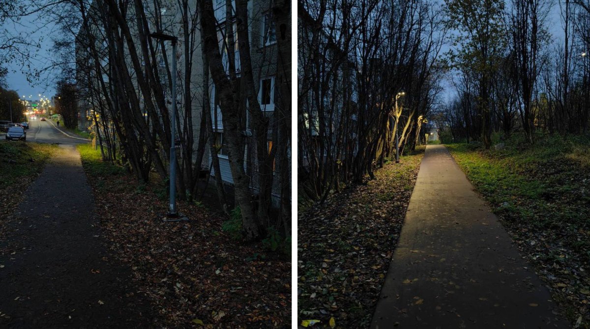 Мурманчане о дефектах ремонта тротуара на Героев Рыбачьего: фонарь не горит, куски асфальта обламываются