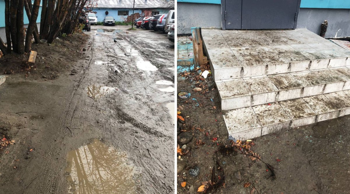 Ранее сообщалось, что во дворе на ул. Николаева в Мурманске разлилась большая лужа с грязью.