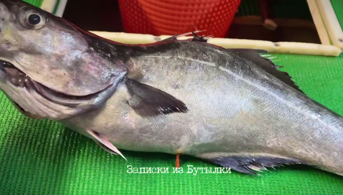 На кадрах можно видеть рыбу с необычно изогнутым позвоночником — вырост на спине чем-то напоминает горбушу.
