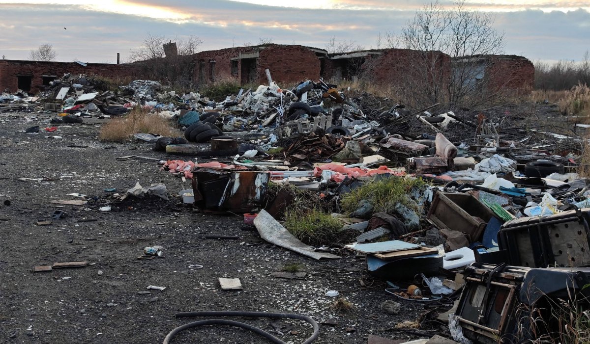 В сообществе опубликовали несколько фотографий, подтверждающих, что территория действительно завалена мусором. В кучи здесь свалены остатки старого оборудования, доски, пластиковые ящики, автопокрышки и куски картона. И все это — на фоне разрушенных построек.