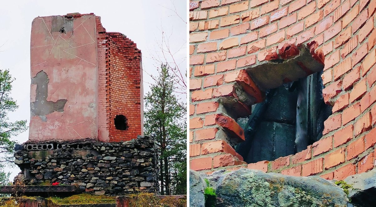 По ее словам, дорога к памятнику заросла деревьями, рядом — кострище и мусор. Кирпичная и каменная кладка развалились, внутри обелиска можно увидеть обожжённые остатки строительных лесов.
