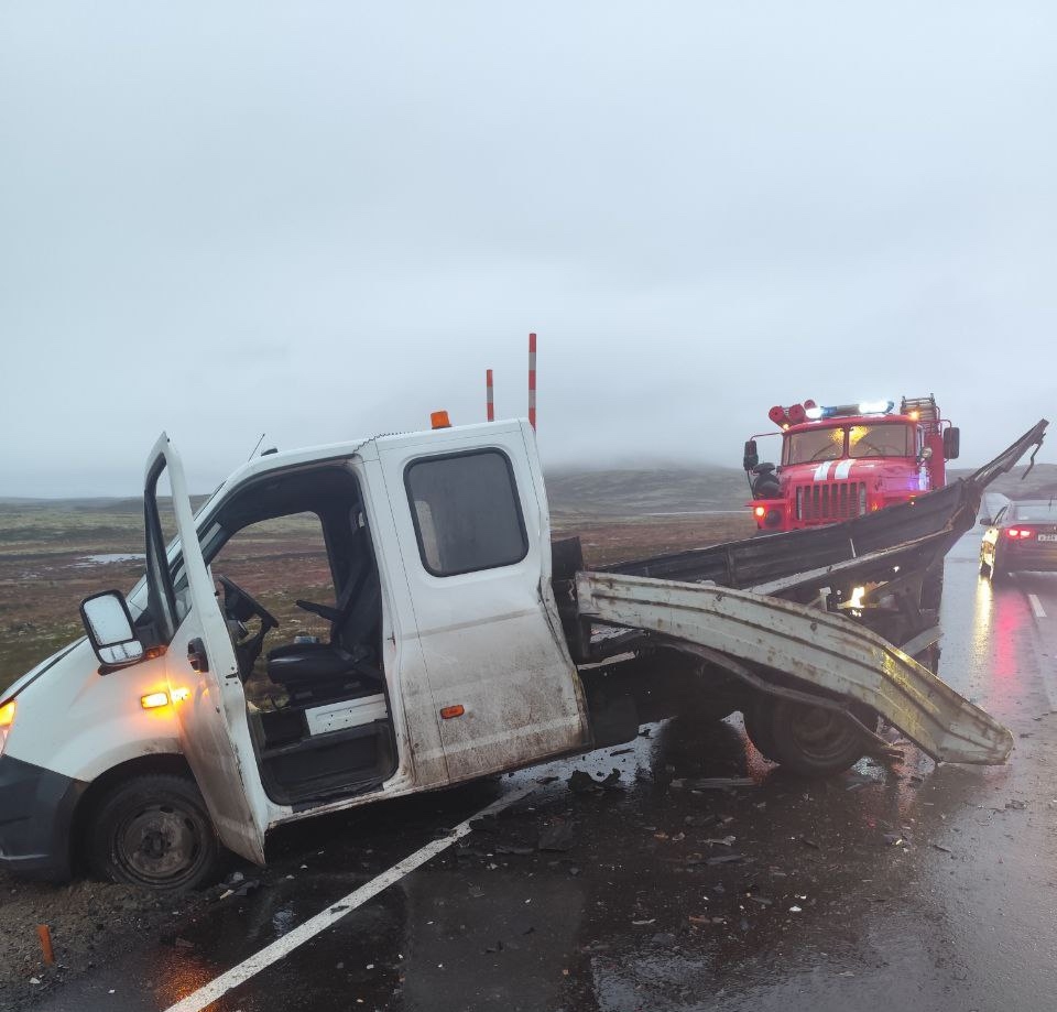 Неподалёку от Териберки внедорожник угодил в ДТП. Авария произошла в районе 18-го километра автоподъезда к селу. Nissan Pathfinder сначала врезался в дорожную спецтехнику, после — в грузовик ГАЗель.