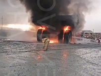 По предварительным данным, люди при происшествии не пострадали, а вот карьерный самосвал полностью обгорел. Что стало причиной возгорания, покажет проверка.
