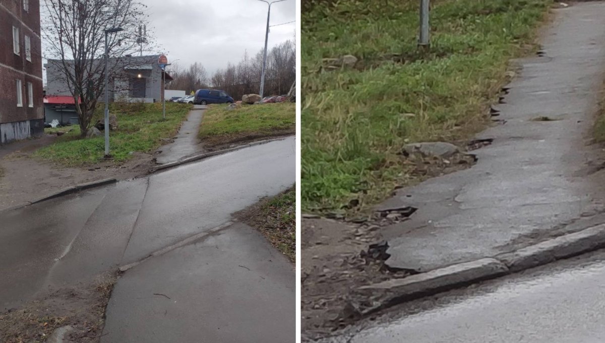 — На свежеотремонтированном тротуаре по ул. Героев Рыбачьего столбы поставили, раскопали, кабель проложили, закопали. А обломанный тротуар почему-то решили не восстанавливать, — возмутились мурманчане в телеграм-канале врио главы областного центра.