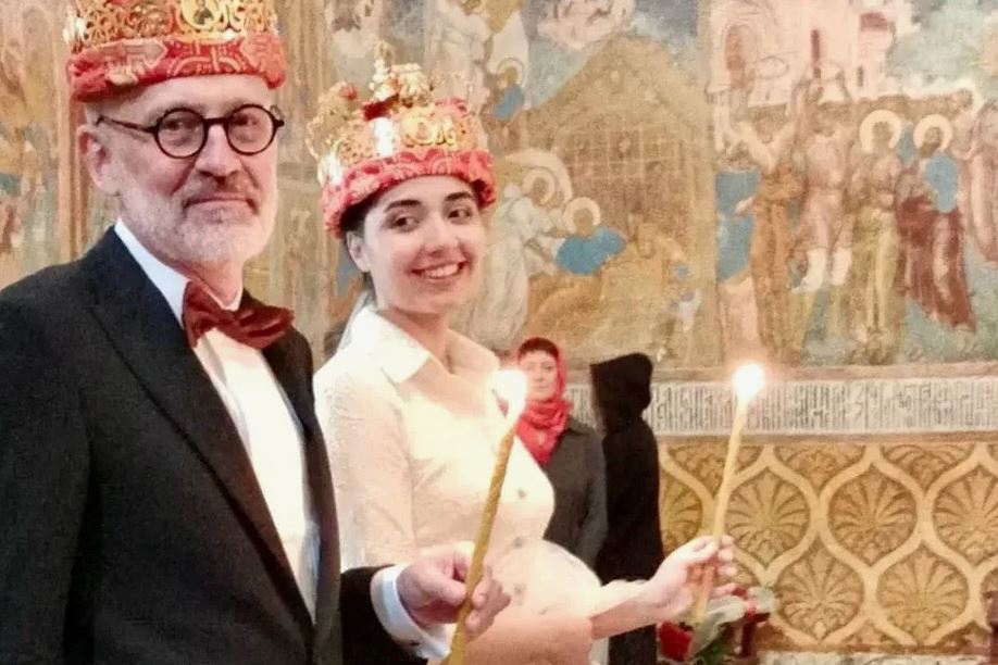 Молодые познакомились 7 лет назад, но отношений между ними не завязалось. Более того, за это время девушка успела выйти замуж и развестись. Однако это не помешало им венчаться в церкви Суздаля. Для таинства обряда София выбрала скромное закрытое платье, которое за свадебным столом сменилось на довольно откровенное.
