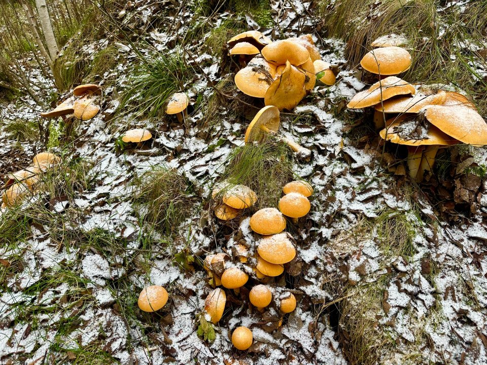 На юге Заполярья грибы не сдавались до последнего — ковдорчанка нашла в лесу поляну зимних опят