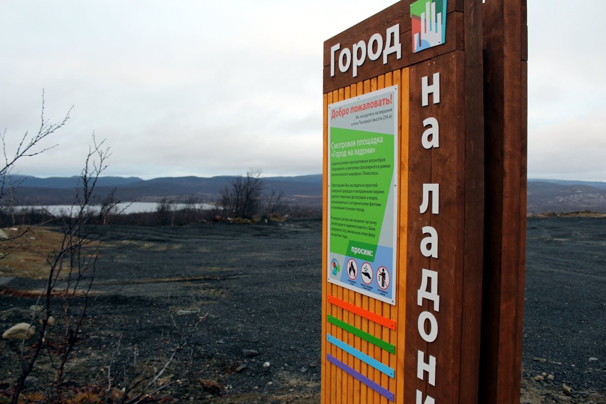 Смотровая площадка оправдывает своё название «Город на ладони». Отсюда открывается красивая панорама на город и окрестности. На территории есть стенды с информацией о местных достопримечательностях. Навигационный столб указывает направление и расстояний до водопада на реке Шуонийоки, визит-центра заповедника «Пасвик», Кольской сверхглубокой скважины. На смотровой площадки есть лавочки.