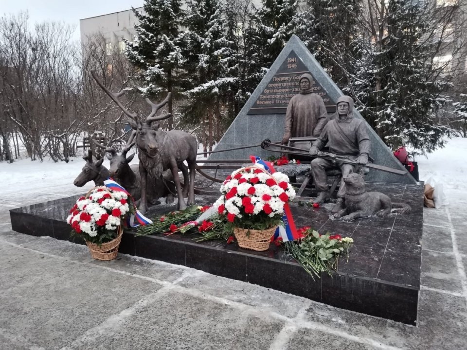 Память участников оленетранспортных батальонов почтили минутой молчания и возложением цветов у мемориалу.