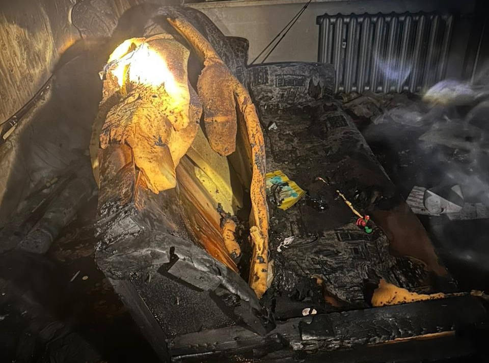 Пожар удалось полностью потушить в 23:45. Оказалось, что источник возгорания находился в комнате. В огне сгорели диван и кресло на площади 2 кв. м. Также по всей комнате закопчены стены и потолок.