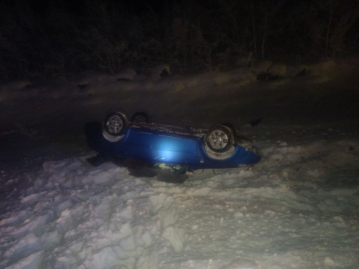 На трассе в Териберку машина врезалась в лося и перевернулась в кювете
