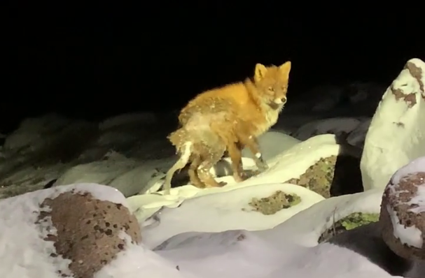 — Эту лисичку надо спасать. Смотрели сияние, она подбежала к нам, подумали кошка. Потом на камни, и убежала, — написала гостья села Ирина в сообществе.