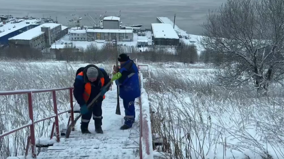 В Мурманске самую длинную лестницу из 429 ступеней чистят от снега 2-3 дня