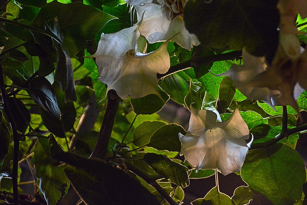 — К вечеру аромат этих большущих «воронок» усиливается и у очень чувствительных людей может даже вызвать головокружение и другие неприятные ощущения. Поэтому слишком долго под бругмансией стоять не рекомендуется! , — говорят специалисты ПАБСИ.