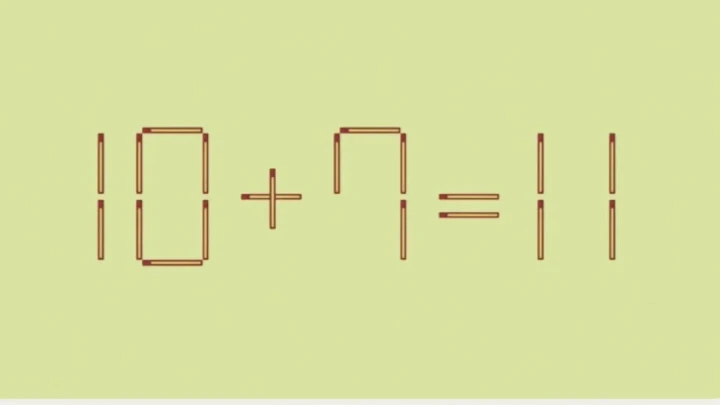 Вот наш пример со спичками: 10+7=11. Нам дано неверное равенство, и его надо исправить. Причём чтобы решить головоломку, можно передвинуть только одну спичку.