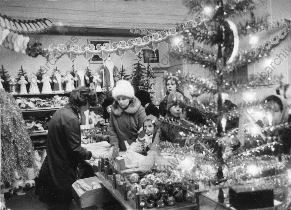 Пластиковые ёлочки появились только в 70-е — их ставили на предприятиях. Здесь же проходили ёлки для детей сотрудников, устраивались конкурсы на сладкие призы.