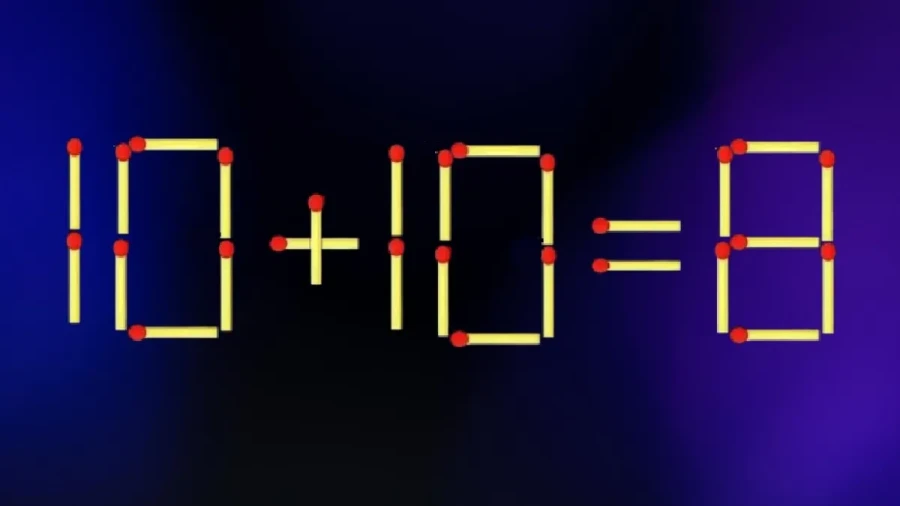 Рассмотрим одну из таких головоломок. Перед вами неверное равенство из спичек: 10+10=8. В нем есть очевидная ошибка, но решить её можно только одним движением спичек.