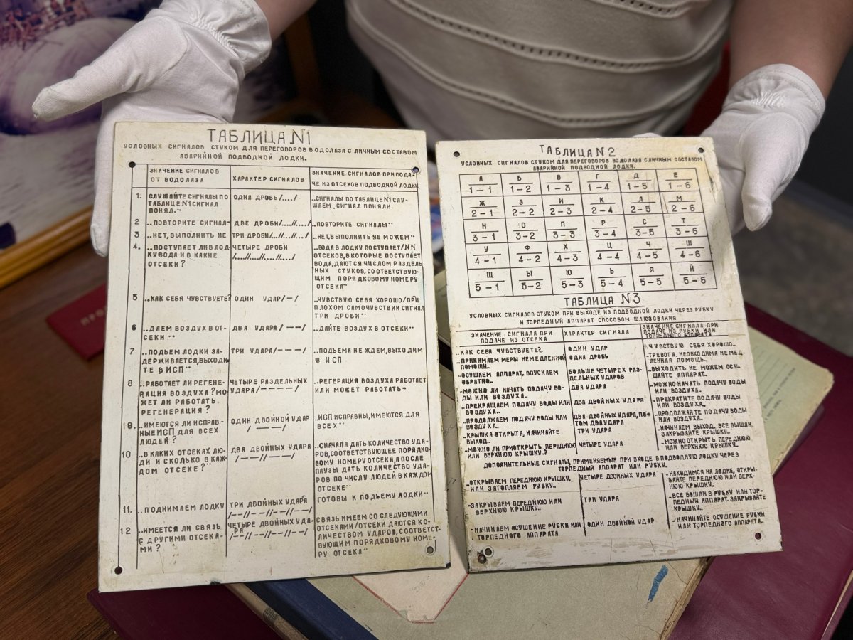 «Один удар — «Как себя чувствуете?»»: старые таблички перестукивания подводников передали музею Полярного