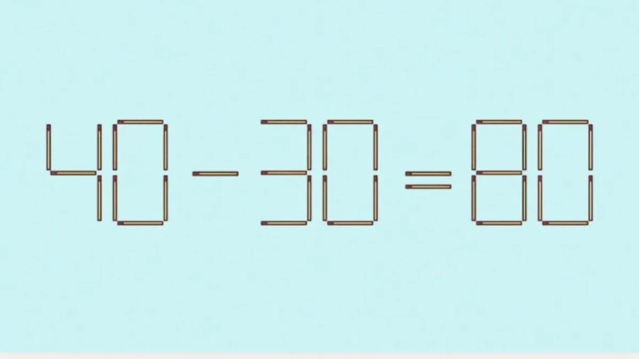 Перед вами неверное равенство из спичек: 40+30=80. В нем очевидная ошибка. Нужно передвинуть только одну спичку, чтобы уравнение сошлось.