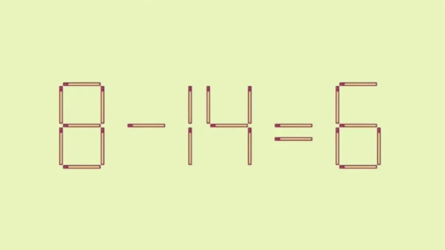 Рассмотрим одну из таких задач. Перед вами неверное равенство из спичек: 8-14=6. Чтобы его исправить, вам можно передвинуть всего 1 спичку.