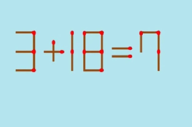 Итак, перед нами пример: 3+18=7. Нужно за 11 секунд переставить одну спичку, чтобы решение было верным.