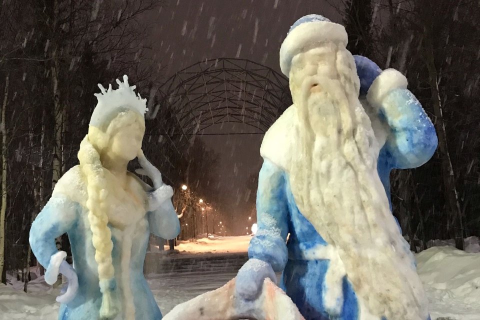 «Какие они хорошенькие в этом году»: в Мончегорске снежные фигуры Снегурочки и Деда Мороза больше не шокируют