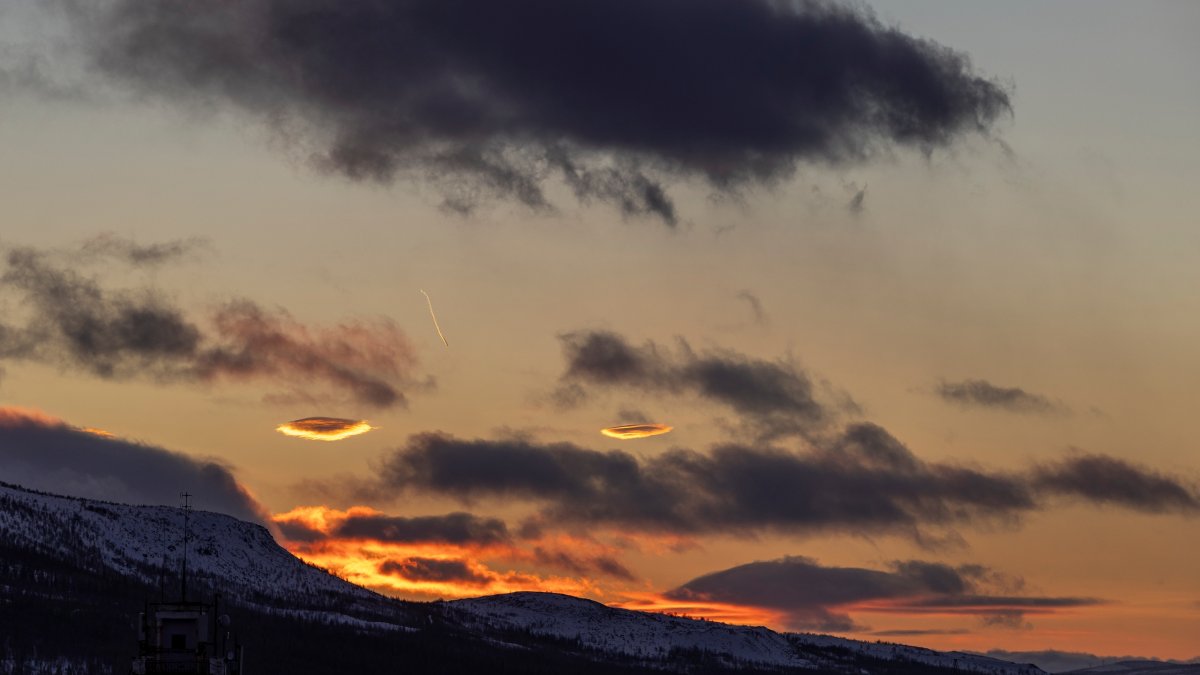 Недавно вечером мончегорский фотограф Александр Степанов заметил в вечернем небе невероятную картину. Из облаков выплывало нечто светящееся, похожее на летающую тарелку. Как оказалось, мистики здесь нет. Облака, разукрашенные в жёлтые и оранжевые цвета лучами солнца, выплывали из-под темно-серых, что находились ниже.