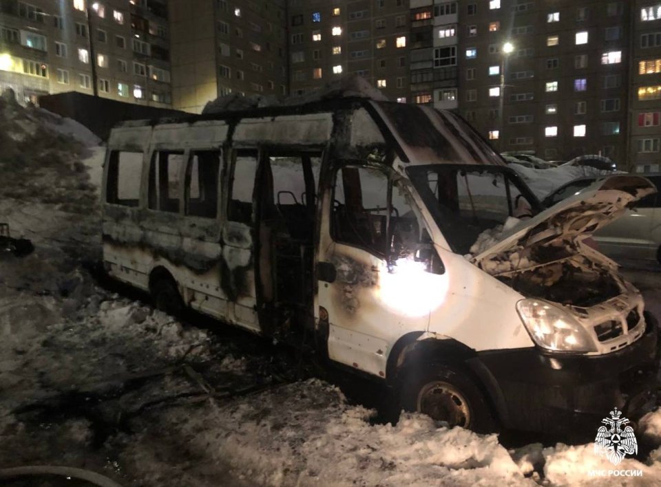 Минувшим вечером пожарные выезжали в мурманский двор. В районе дома № 45 на улице Маклакова огонь охватил припаркованный микроавтобус. Пламя распространилось не только по корпусу иномарки, но и проникло внутрь салона.
