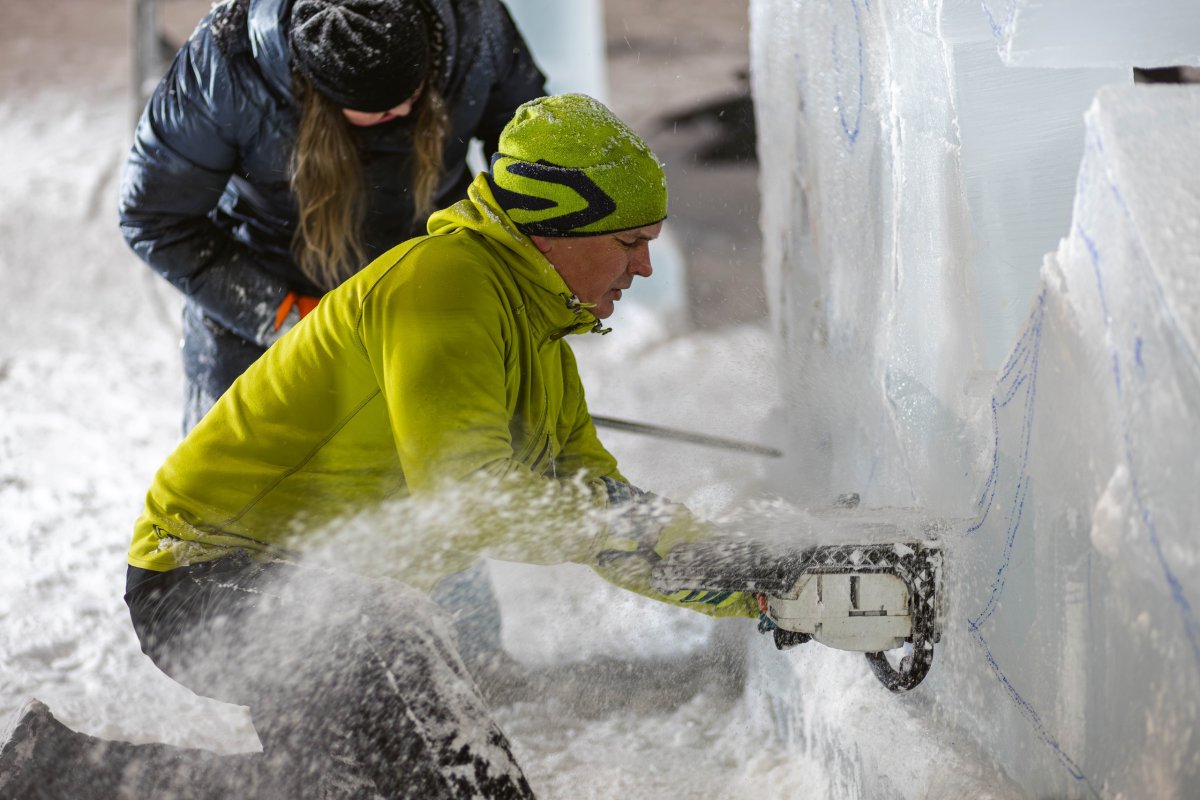 А в 18 часов те, кто уже имеет какой-то опыт взаимодействия со льдом, начнут работу с глыбами размером 1,5×1,5 метра. Для них откроется командная мастерская. Коллективы художников будут создавать скульптуры — вырезать, шлифовать и работать над деталями. Готовые фигуры украсят ледовую экспозицию арт-парка «Изовела», рассказали в Центре современного искусства.