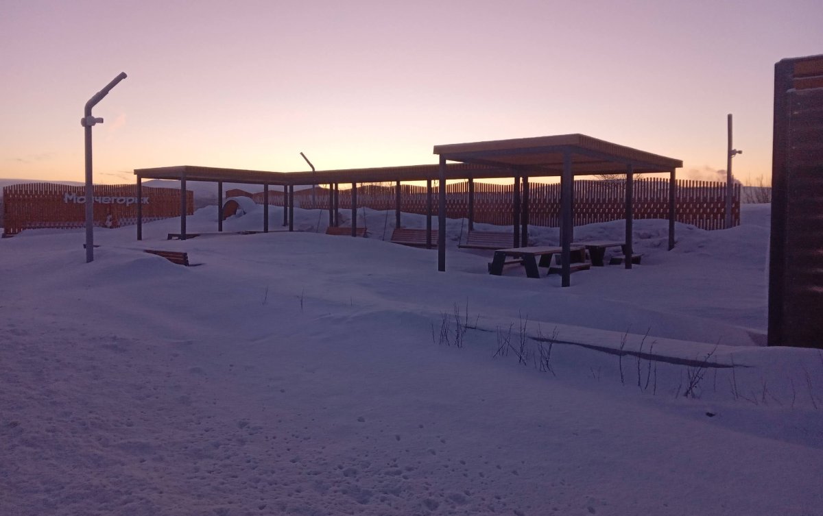 Комплекс для отдыха автотуристов, который появился нынешней осенью при въезде в Мончегорск на повороте с федеральной дороги Р-21 «Кола», полностью замело. Об этом местные жители сообщили в соцсетях.
