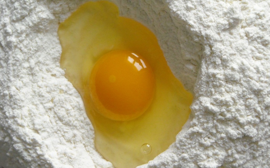 Начинка с тестом должна настояться в течение 15 минут. В это время мы готовим обмазку: соединяем молоко с яичным желтком. Полученной массой хорошо смазываем бортики.