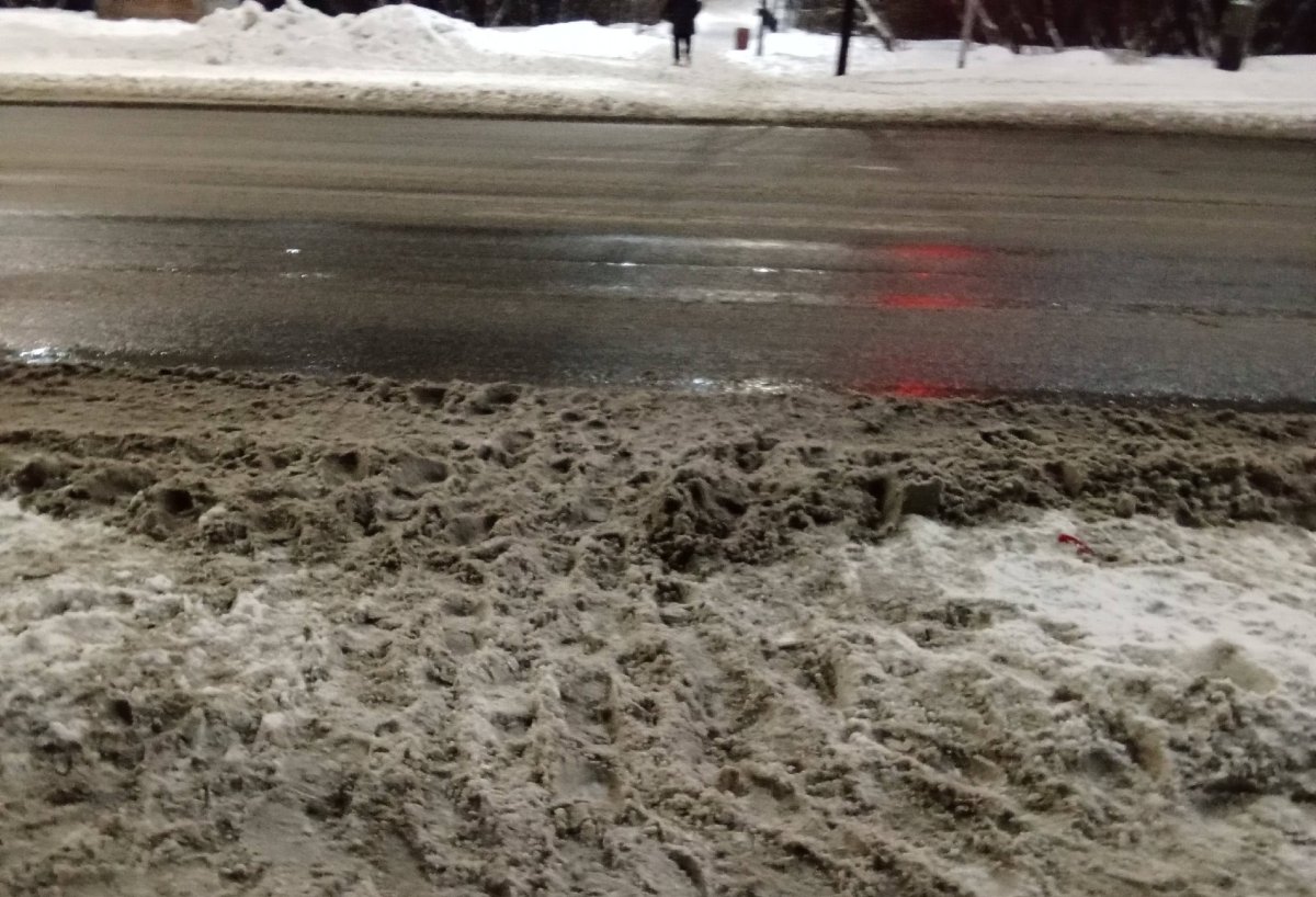 — Как не прочищали выходы на пешеходном переходе, так и не чистим! Улица Копытова — все четыре перехода. Вся вода скопилась здесь, в снегу. Обувь мокрая! — возмутилась местная жительница.