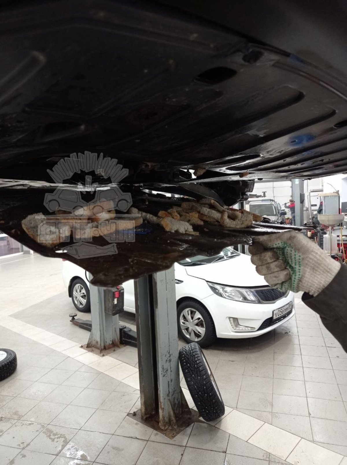 В Мурманске на станции ТО под днищем машины нашли залежи хлебных корок — нору обустроили крысы
