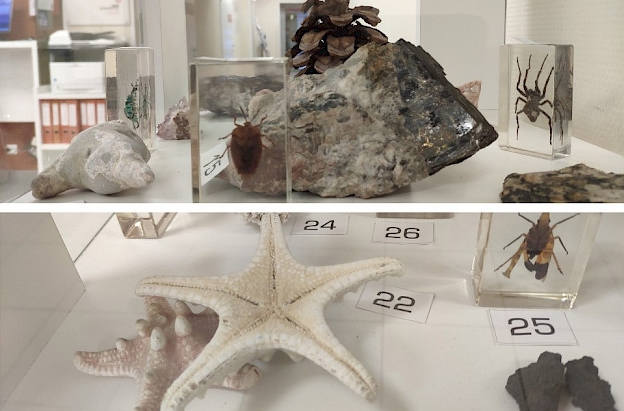 В числе экспонатов есть и обитатели океанических вод, например, морские звезды, и шишки хвойных деревьев, привезённые из различных уголков нашей планеты.