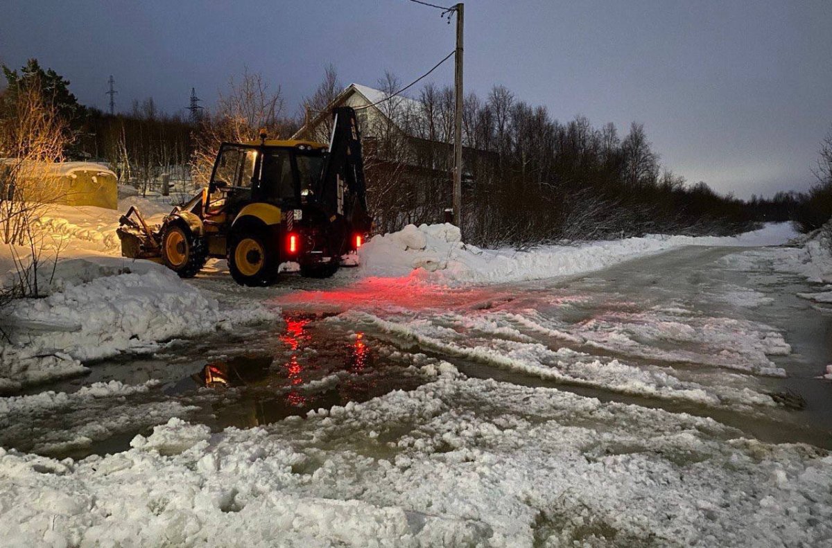 Сотрудники Управления городского хозяйства выехали на место и обследовали местность, сообщил глава Кольского округа Александр Лихолат. Судя по опубликованным им фотографиям, вода течёт по проезду на ул. Дорожная микрорайона «Юго-восточный» — на отдельных участках снег развезло, появились огромные лужи.