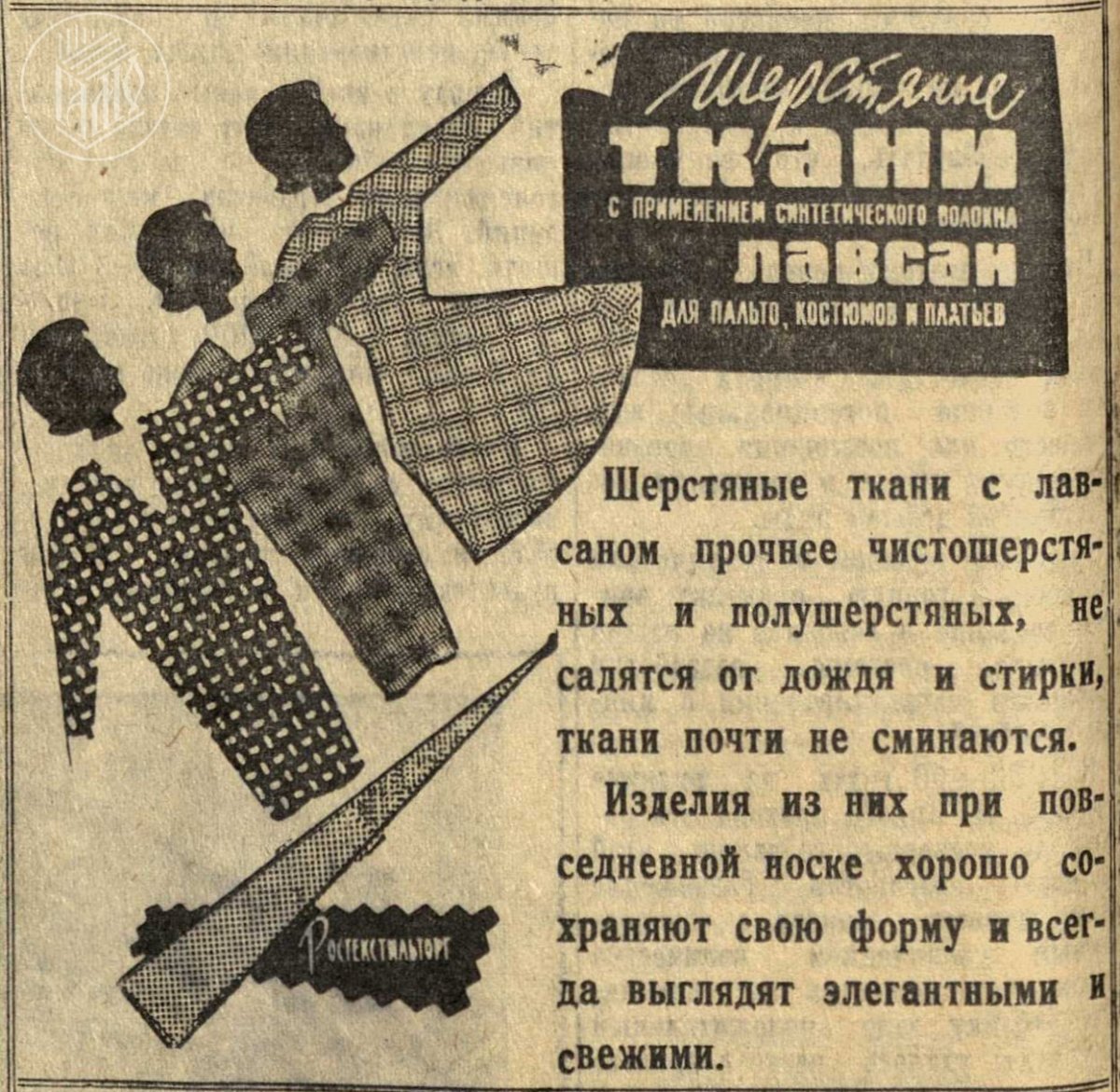 В декабре 1960 года на страницах мурманской газеты «Полярная правда» вышла заметка, рекламирующая одежду из лавсана. Отмечалось, что шерстяные ткани с добавлением уникального сырья не садятся после стирки в горячей воде. Правда, как рассказывает один из подписчиков группы регионального Госархива в соцсети, был у лавсана и минус — ткань не «дышащая».