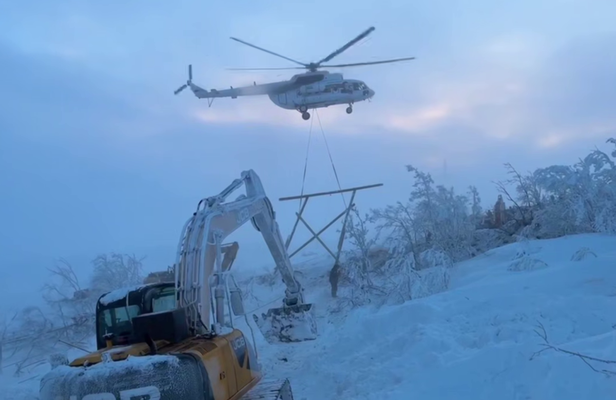 На месте аварии в Заполярье смонтировали и закрепили еще одну опору ЛЭП — в установке помогал вертолёт