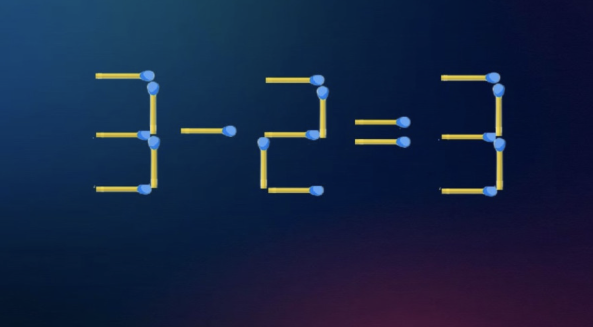 Взгляните, например, на неверное равенство «3-2=3». На первый взгляд кажется, что всё просто, но попробуйте переместить всего одну спичку, чтобы пример стал правильным.