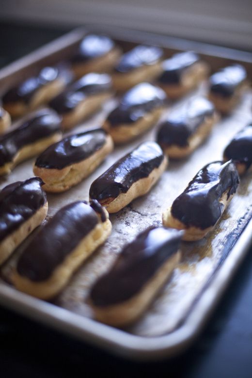 А вот эклеры — это только и всегда десерт, такие длинные пирожные с кремом внутри и шоколадной глазурью. Но самое интересное, что для обоих этих лакомств нужно одно и то же тесто. Я о таком не знала.