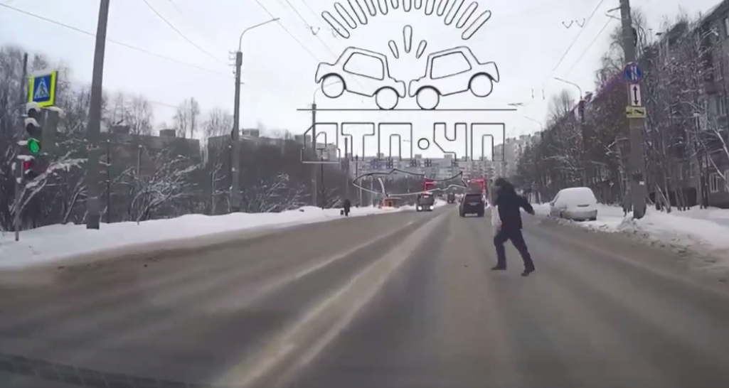 Для машин горел разрешающий знак светофора, а для пешеходов — красный. Тем не менее, стоявший на тротуаре мужчина внезапно выскочил наперерез машине. Водитель, к счастью, успел затормозить. Ему даже пришлось вывернуть руль вправо, чтобы не задеть пешехода.