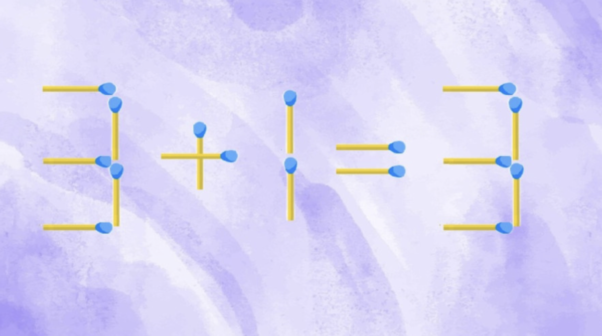Итак, на картинке перед вами простая спичечная задачка. В равенстве «3+1=3» допущена ошибка, которую можно исправить, переставив всего одну спичку. Подумайте, как это сделать.